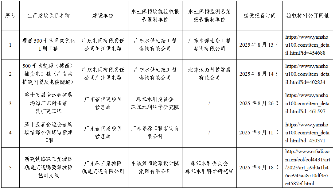粤西500千伏网架优化I期工程等7宗项目水土保持设施自主验收报备公示